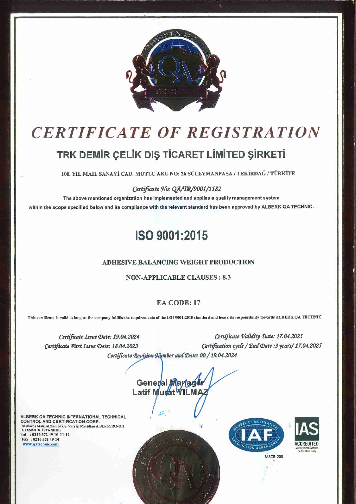 TRK Balance olarak, yapıştırma balans ağırlığı üretiminde sürekli kendini yenileyen yapımız ile ülkemizde liderliğimizi sürdürmek ve bir Dünya markası olmaktır.